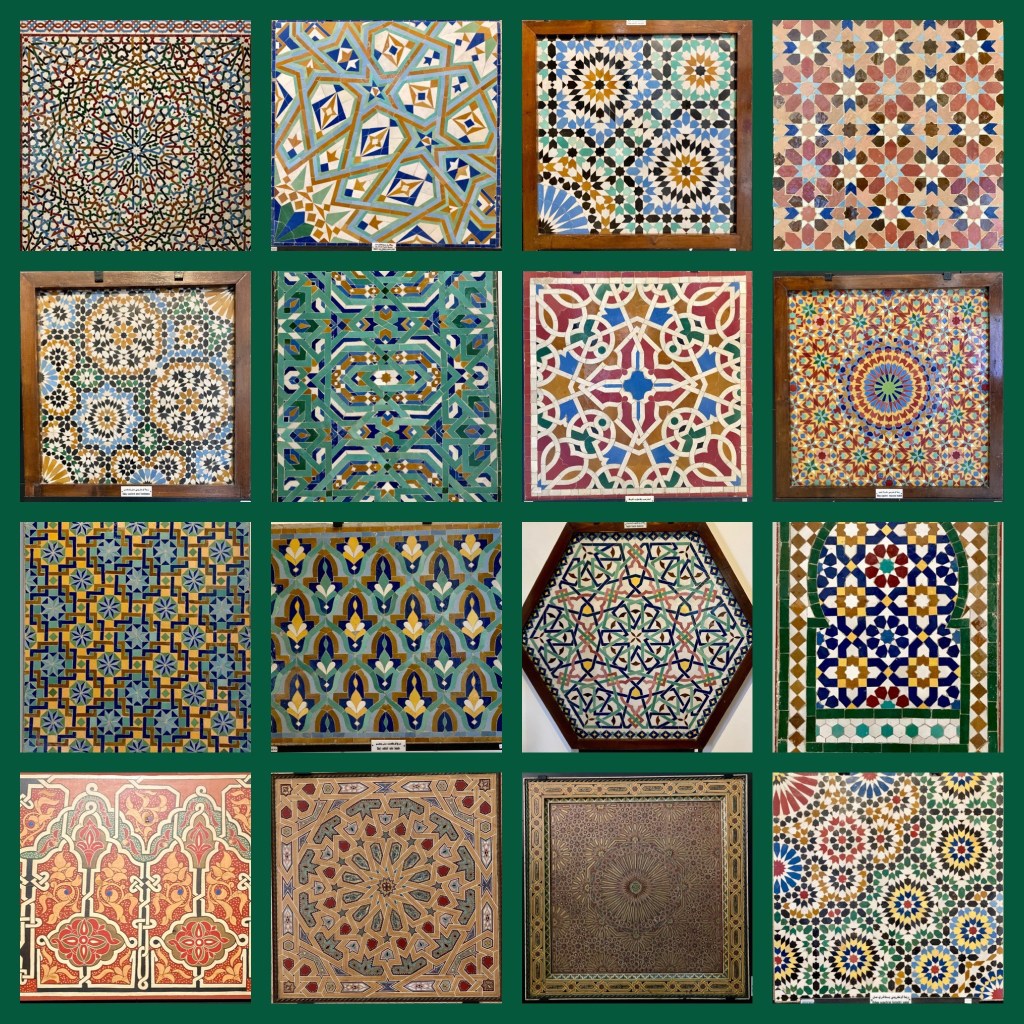 Im angeschlossenen Museum konnten wir zahlreiche arabische Fliesen bewundern. Mich haben diese bunten Muster immer schon fasziniert. Da es den Gläubigen verboten war lebende Wesen abzubilden, mussten sie Alternativen zur Gestaltung der Fliesen finden. So wichen die damaligen Künstler auf Ornamente aus, und es entstand das sogenannte Spinngewebe Gottes.