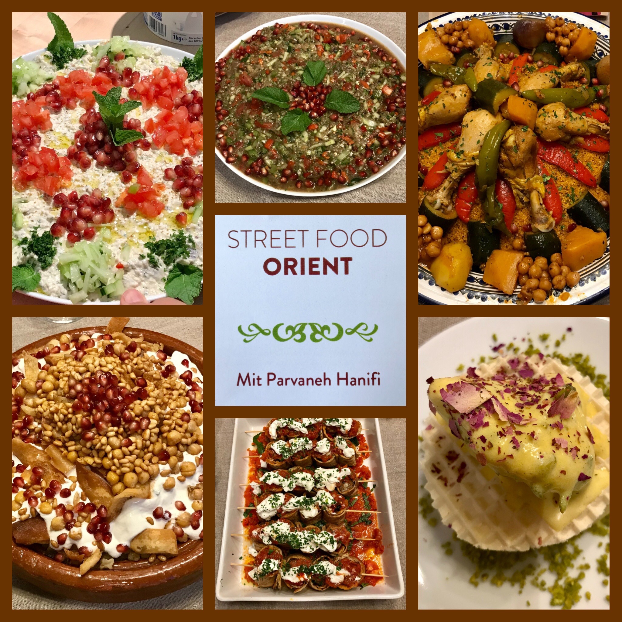 Jetzt habe ich schon lange nichts mehr geschrieben. Die Sommer werden immer heißer und ich immer schreibfauler! Das muss ich aber unbedingt teilen. Letztes Jahr zum runden Geburtstag stand ja ganz im Fokus von Marokko, von dem ich hoffentlich endlich nächstes Jahr im Frühjahr hier berichten werde können. Also eines der orientalischen Geschenke war ein Kochkurs bei https://babettes.at. Letztes Jahr war‘s nicht möglich, also habe ich mich für heuer für orientalisches Streetfood angemeldet. Gestern war‘s dann endlich soweit. Die Temperaturen haben gepasst, für‘s orientalische Feeling war gesorgt. Wir kochten zu 12 unter Anleitung der persischen Köchin Parvaneh Hanifi 3 Vorspeisen, 2 Hauptspeisen und eine Nachspeise. Wir waren dreieinhalb Stunden schwer beschäftigt in der kleinen Küche, aber die Schufterei hat sich ausgezahlt. Es war alles köstlich! Aber ob ich mir das für meine Gäste alles antun werde? Das ist eine andere Geschichte!😉