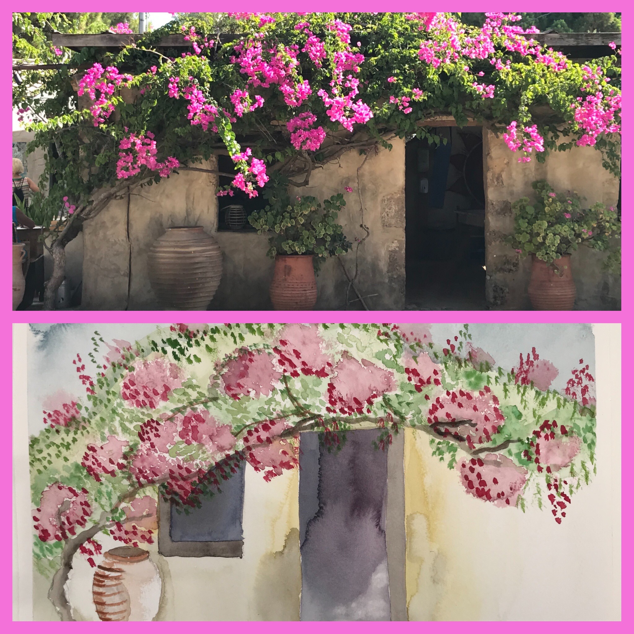 Auch dieses Jahr haben Birgit, Karin und ich es wieder in die Sommerakademie nach Vassilikos geschafft! Wir haben uns die Stimmung trotz Mini Lockdowns nicht vermiesen lassen und haben unseren Urlaub mit nur 2 Kursen genossen! Auch diesmal war’s Aquarell, aber mit Huck Scarry! Er hat uns sehr gut beigebracht unsere Augen auf den genauen Blick auf den Schatten zu schulen! Interessante Technik! Hier, was in dieser Woche so entstanden ist:
